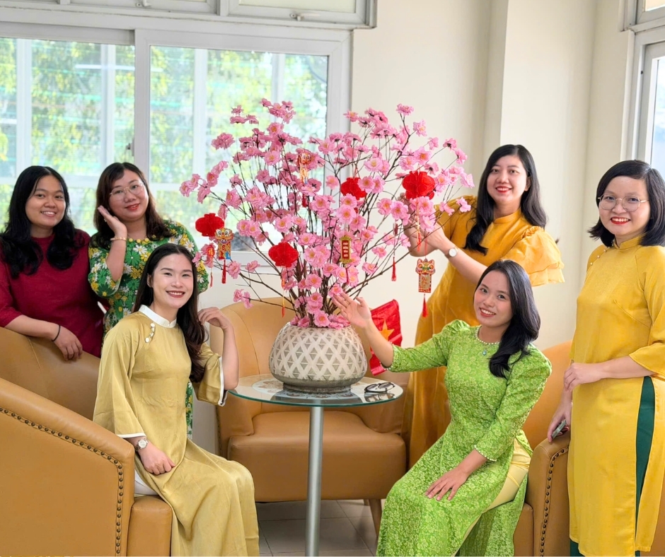 Các cô Housekeeping duyên dáng trong tà áo dài truyền thống, góp phần tô điểm sắc xuân và lan tỏa nét đẹp giản dị, tận tâm tại bệnh viện.
