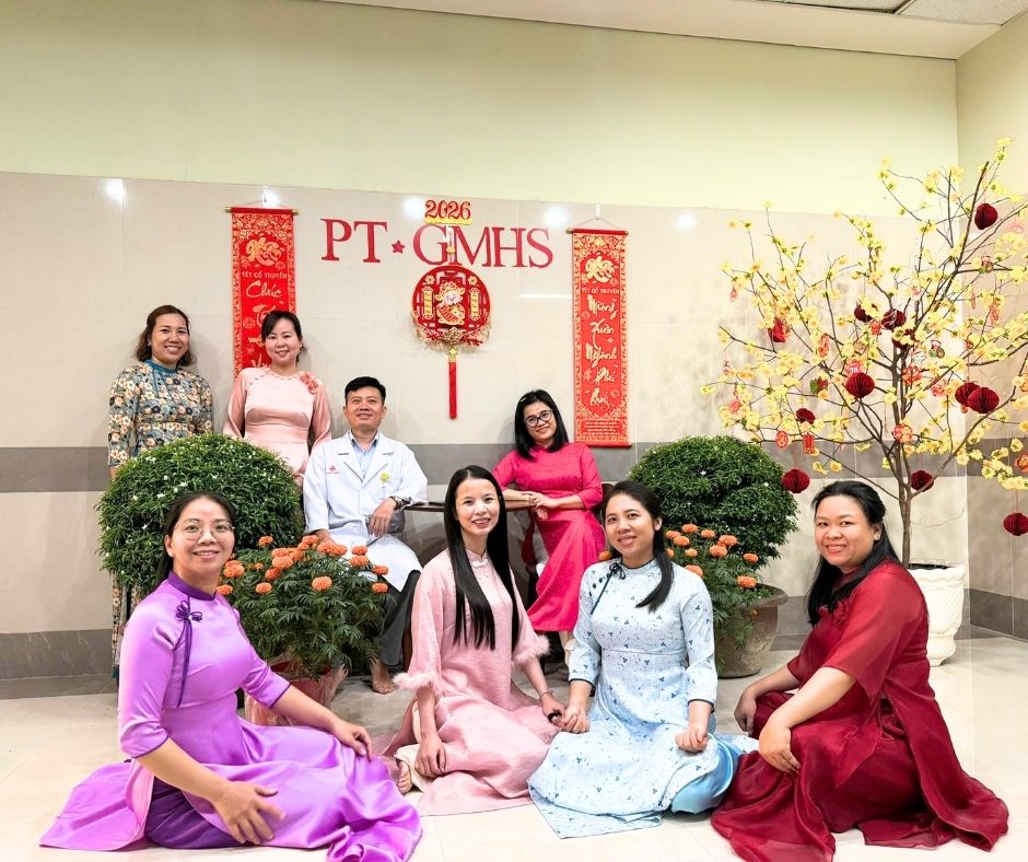 Tập thể Khoa Y học cổ truyền & Phục hồi chức năng với những nụ cười rạng rỡ, lan tỏa năng lượng tích cực và không khí xuân ấm áp tại khoa.