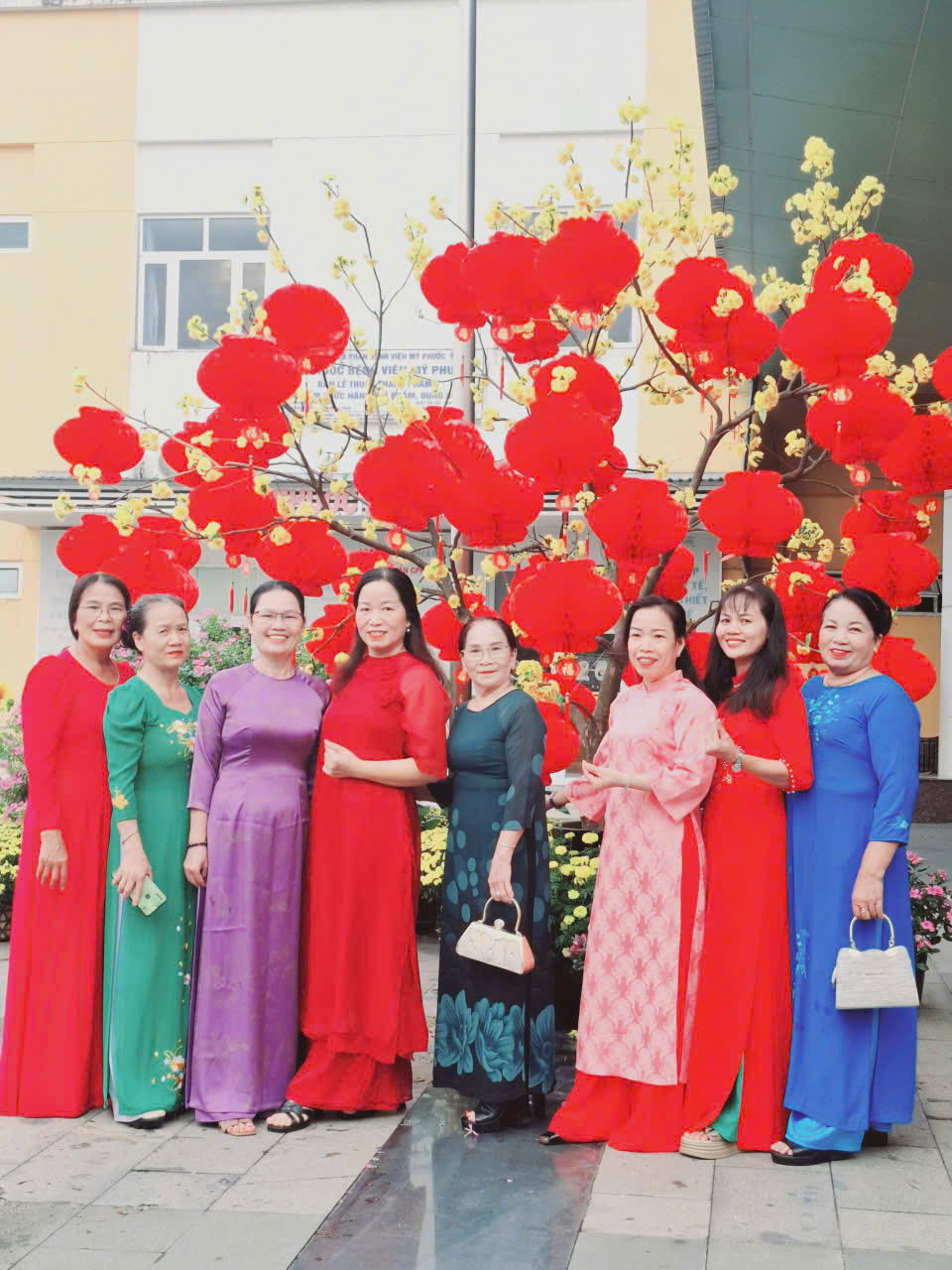 Các nữ nhân viên Khoa Chẩn đoán hình ảnh & Thăm dò chức năng rạng rỡ, xinh tươi trong tà áo dài truyền thống, góp phần tô điểm sắc xuân tại khoa.
