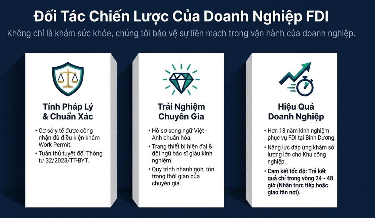 Với hệ thống trang thiết bị hiện đại, đội ngũ bác sĩ giàu kinh nghiệm cùng quy trình khoa học, bệnh viện cung cấp dịch vụ khám sức khỏe Work Permit nhanh chóng – chính xác – đúng quy định pháp luật, hỗ trợ doanh nghiệp và người lao động hoàn thiện hồ sơ thuận tiện.